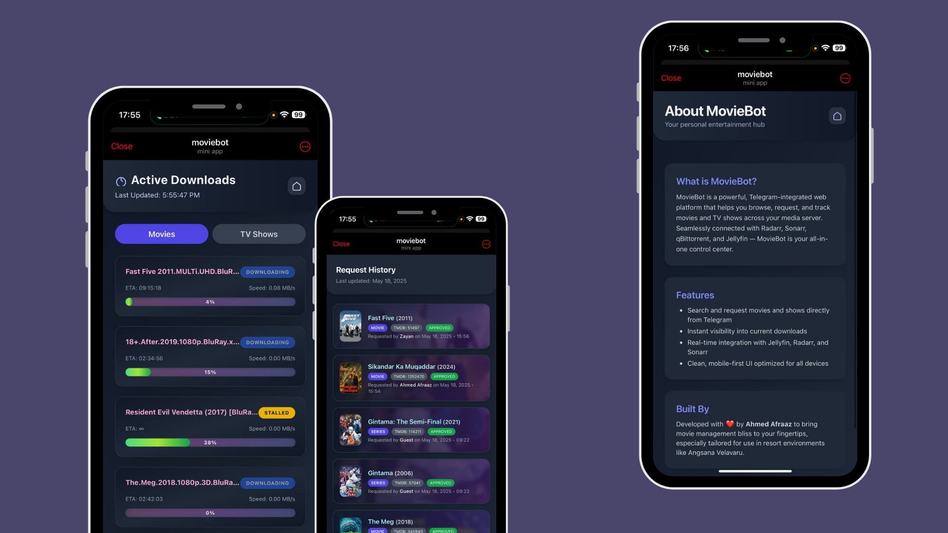 Designed for both speed and control, MovieBot delivers a streamlined, all-in-one media management experience.